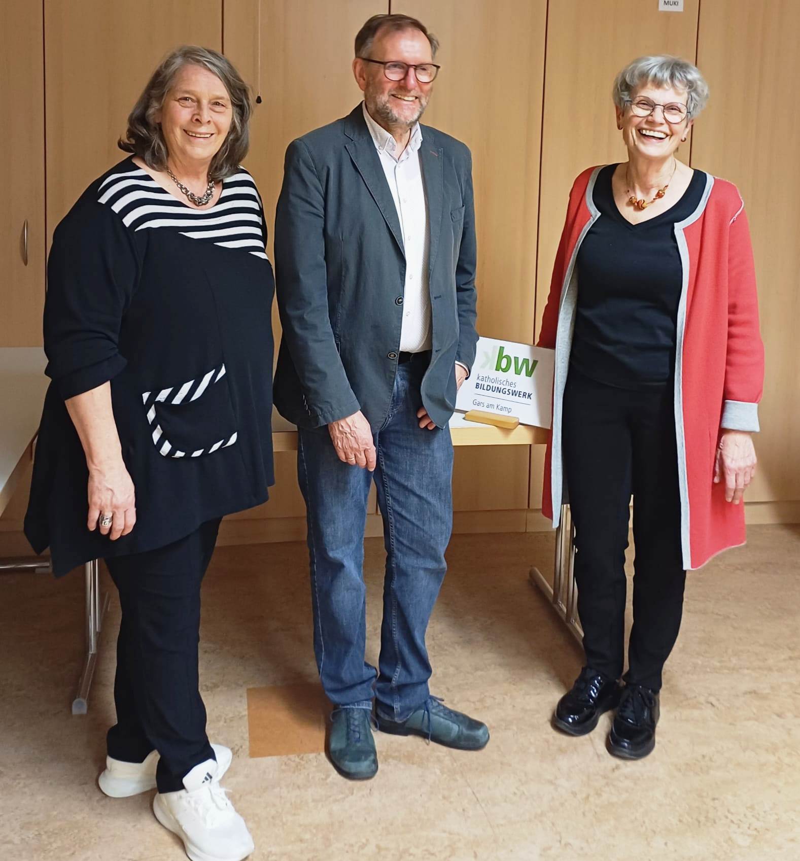 Mit dem Workshop „Tanzend beten – betend tanzen“ ging das KBW Gars in die Sommerpause. KBW-Leiterin Elisabeth Ehrenberger sowie Tanz-Teilnehmerin Gabriele Wittmann (von links) bedankten sich bei der Vortragenden Maria Zehetgruber (Bildmitte) für einen beeindruckenden Abend voll Bewegung.