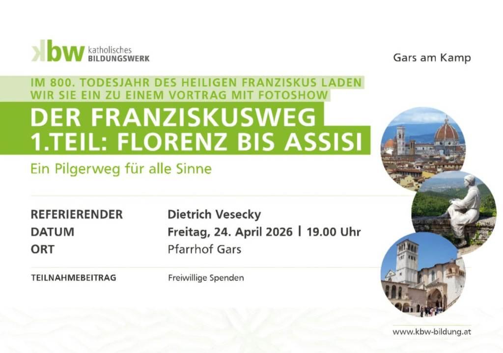 Der voraussichtlich nächste Termin des KBW ist ein Pilgerwandertag am 5.Oktober 2024. Frau Elisabeth Hübl wird als Pilgerbegleiterin mit den Teilnehmern von Gars nach Tautendorf unterwegs sein. Genauere Information über Ablauf und Anmeldemöglichkeiten erfolgt noch.